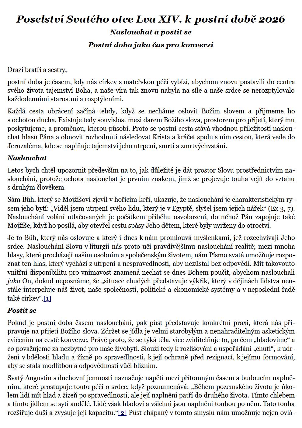 Vstupujeme do čtyřicetidenní přípravy na slavení Kristova velikonočního vítězství, do doby obrácení a pokání, ale též usebraného rozjímání Ježíšových pašijí.