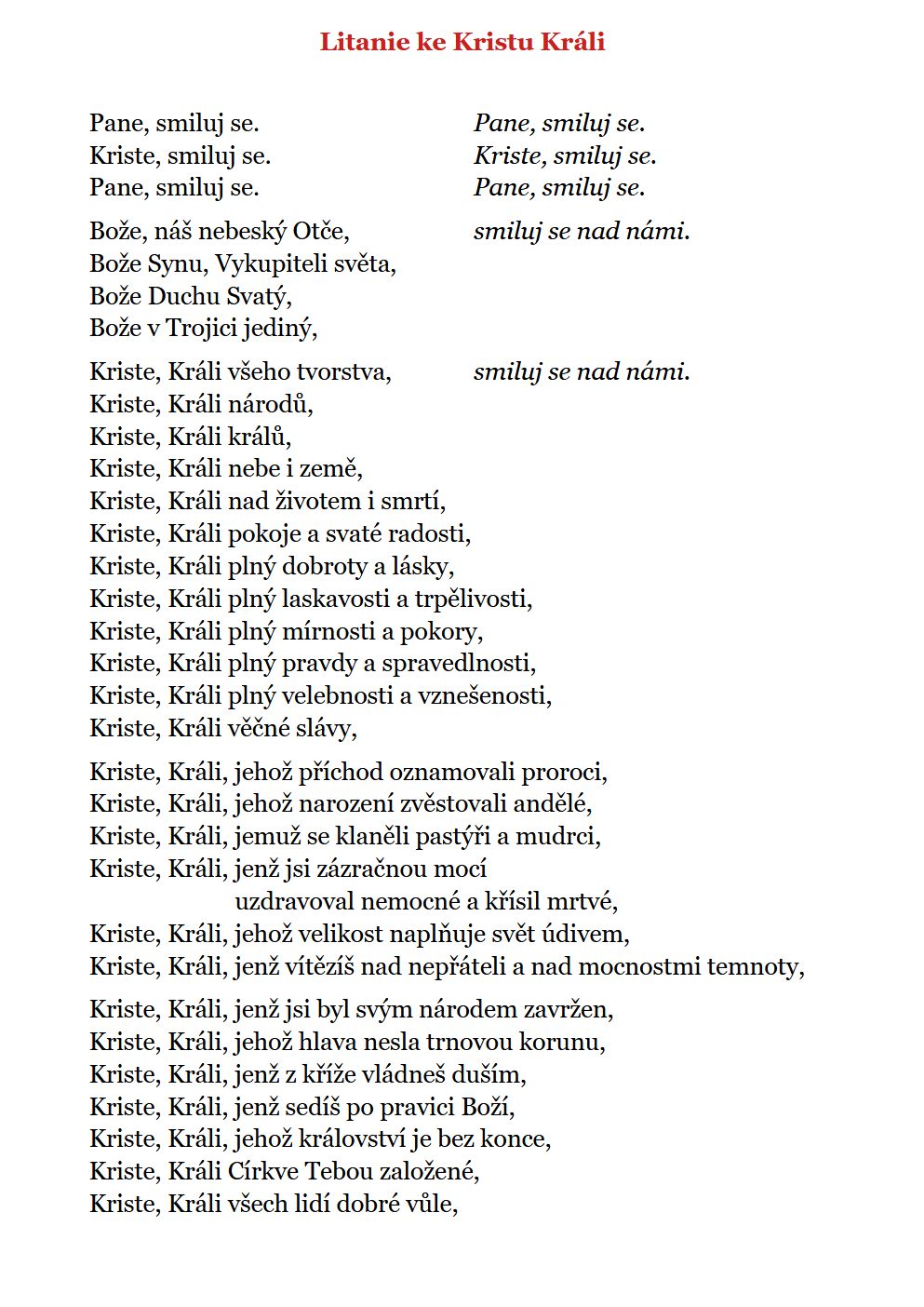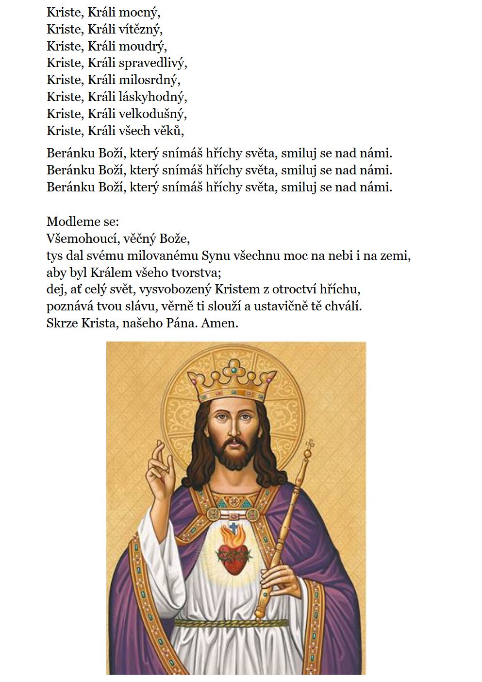 O to tě prosíme skrze Krista, našeho Pána. Amen.