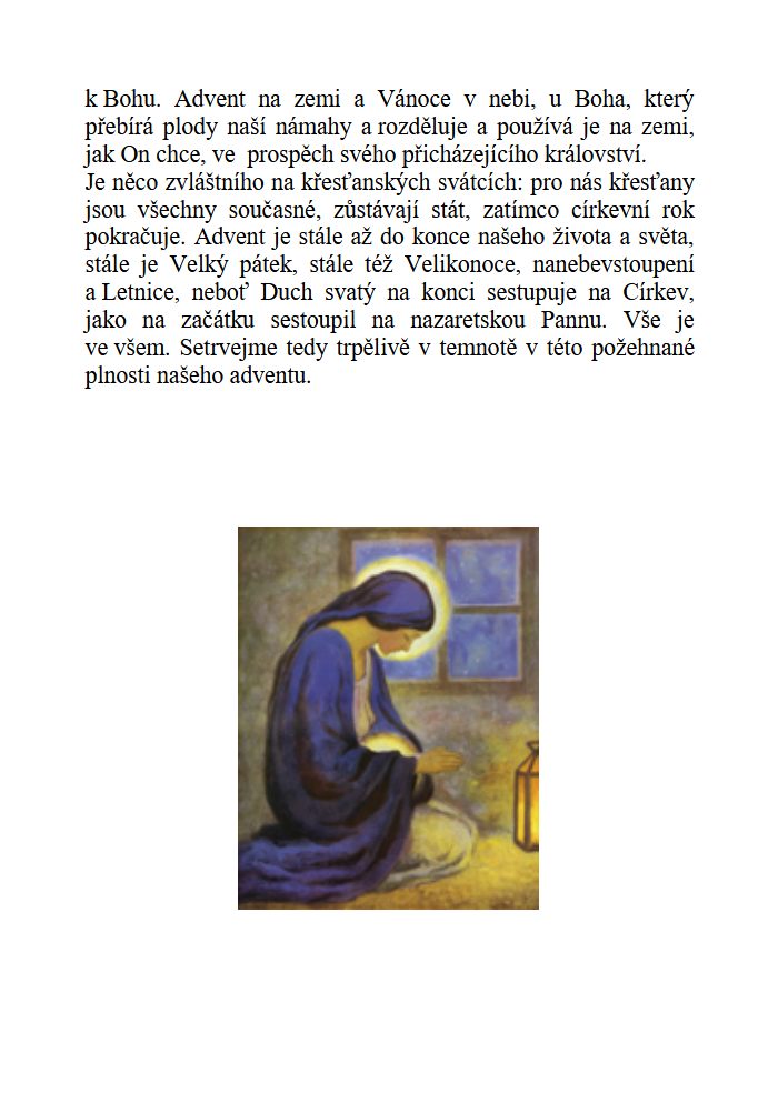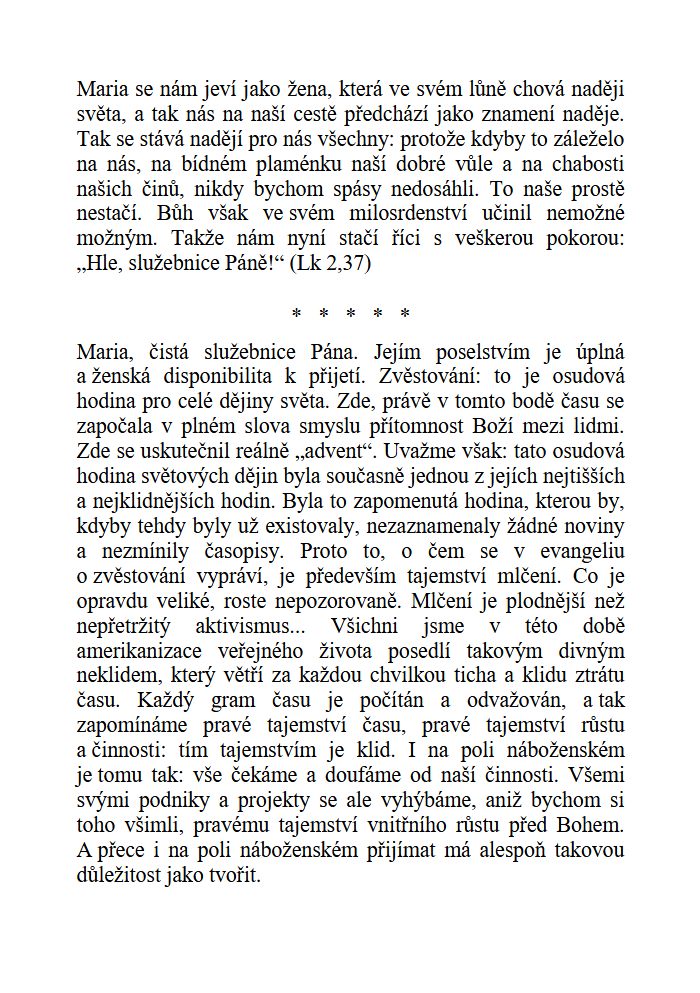 Na přímluvu Panny Marie to vše předávám Bohu Otci. Celý se odevzdávám k dispozici Panně Marii. Bezvýhradně jí předávám svou minulost, budoucnost i přítomnost.