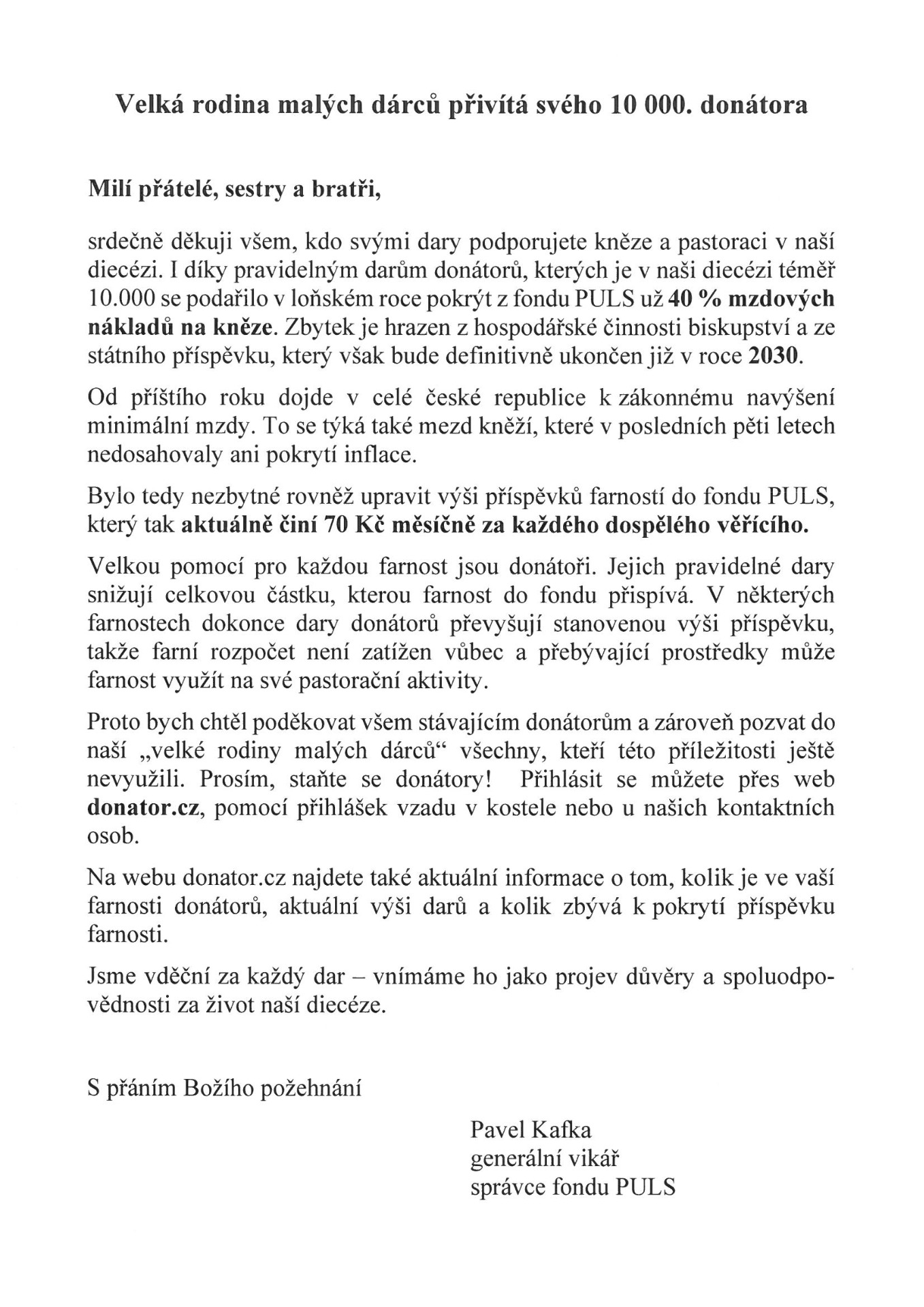 15. listopadu na pomoc pronásledovaným křesťanům a dalším potřebným v zahraničí