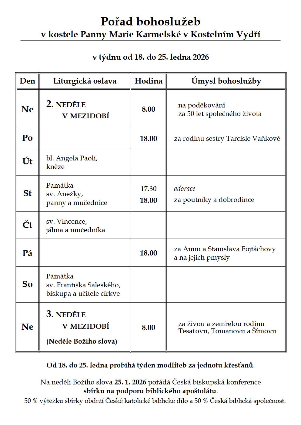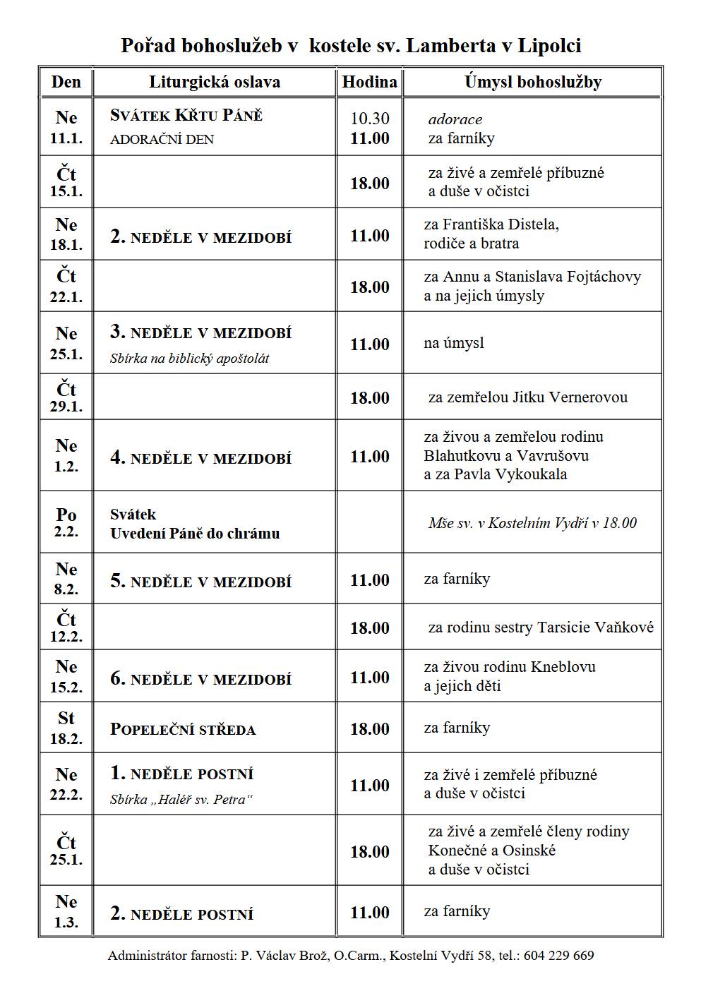 Pořad bohoslužeb v námi spravovaných farnostech